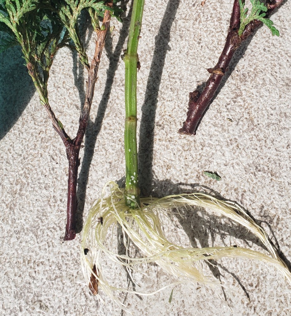 Now, do notice the lovely roots on the coleus and no roots on the woody cedar. Water rooting is for fleshy, juicy plants: annuals, herbs and houseplants can do well. If you wish to propagate woody trees and shrubs you are better off getting some rooting hormone and putting them right in soil. (That’s a whole other blog post.)